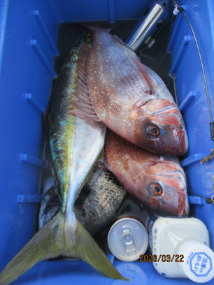 徐々に潮が速くなってアタリ遠のいてしまい厳しくなりましたが、流しながらクロダイ・イナダ混じりながらたまにはマダイのアタリも出て、終盤にも潮が弛んだタイミングでポツポツアタってくれました。