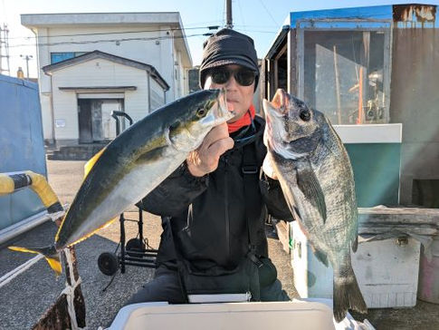下浦沖40mからスタートして、まずはクロダイ、イナダが釣れました。