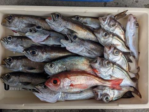 なかなか難しい感じでしたが、アタリ少ないながらも単発で拾って、マダイは3枚ずつ顔見れました。