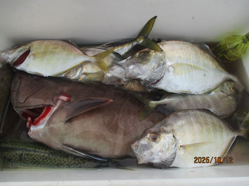 そのほかにもカイワリに似たインドオキアジ、マダイなど色々釣れて、本命ハナダイは船中4枚、カイワリは38匹になりました。